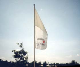 Netzgewebe eignet sich für den großflächigen Werbeeinsatz (z. B. an Hauswänden, Gerüsten)